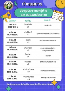 กำหนดการ ประชุมประชาคมหมู่บ้าน ประจำปีงบประมาณพ.ศ.2568 อบต.พบประชาชน