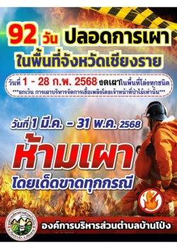 92 วัน #ปลอดการเผา #ในพื้นที่จังหวัดเชียงราย