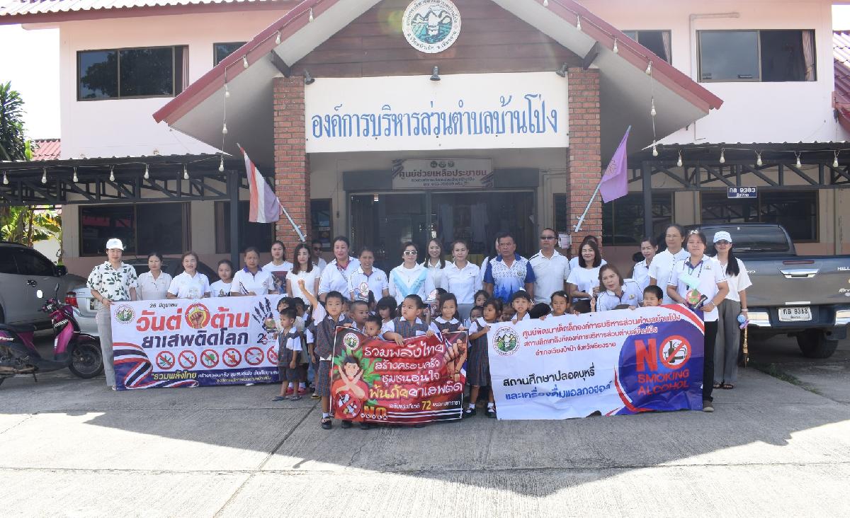 วันที่ 26 มิถุนายน 2568 วันต่อต้านยาเสพติดโลก โดย องค์การบริหารส่วนตำบลบ้านโป่ง ร่วมกับ โรงเรียนบ้านสัน และประชาชนตำบลบ้านโป่งดำเนินกิจกรรมวันต่อต้านยาเสพติดโลก เนื่องในวันต่อต้านยาเสพติดโลก ร่วมเดินรณรงค์ส่งเสริมประชาสัมพันธ์ให้รู้เท่าทันถึงภัยร้ายแรงของยาเสพติด