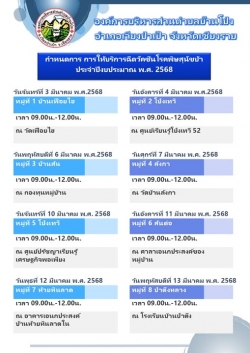 กำหนดการ การให้บริการฉีดวัคซีนโรคพิษสุนัขบ้า ประจำปีงบประมาณ พ.ศ. 2568